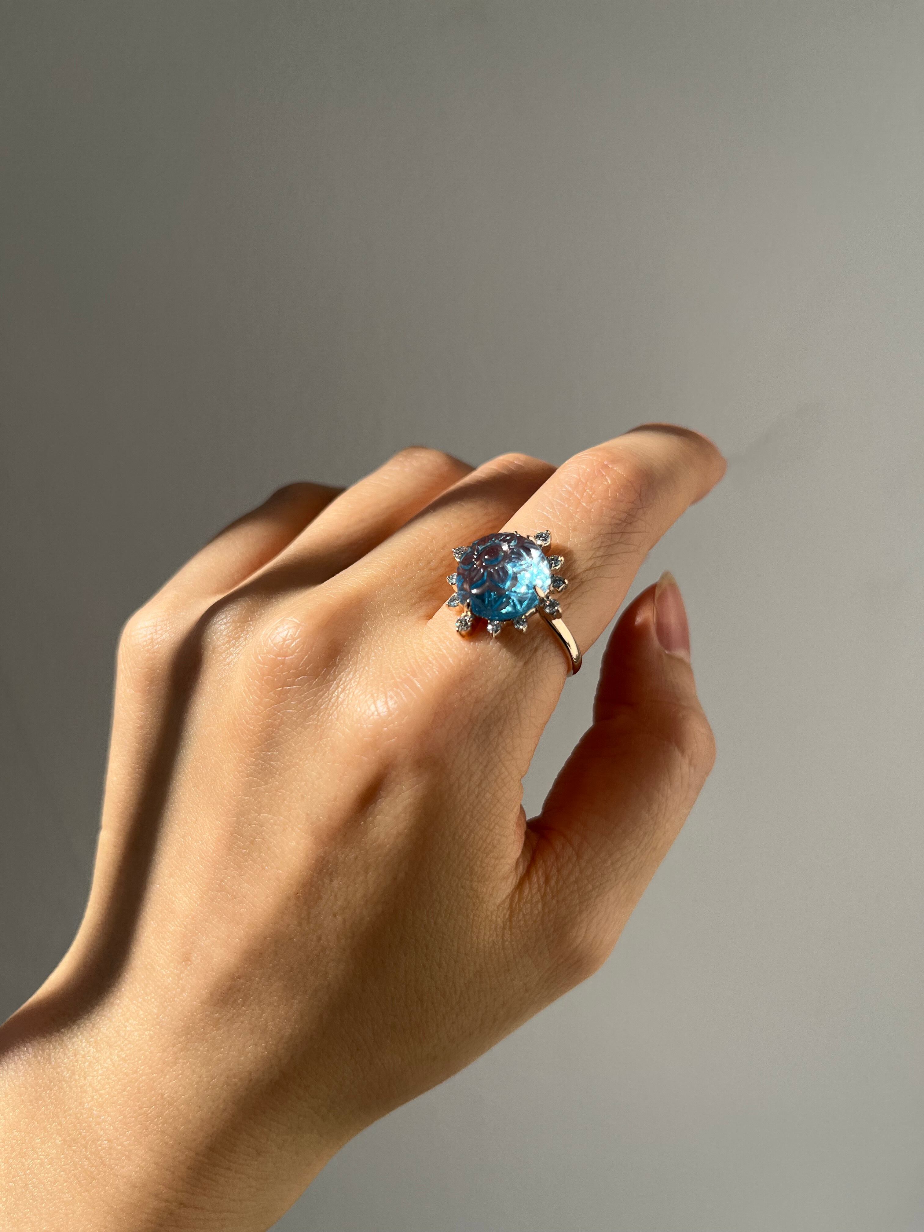 うるうるとした透明感と、たっぷりとしたボリューム感を兼ね備えたカービングストーンのブルートパーズ。