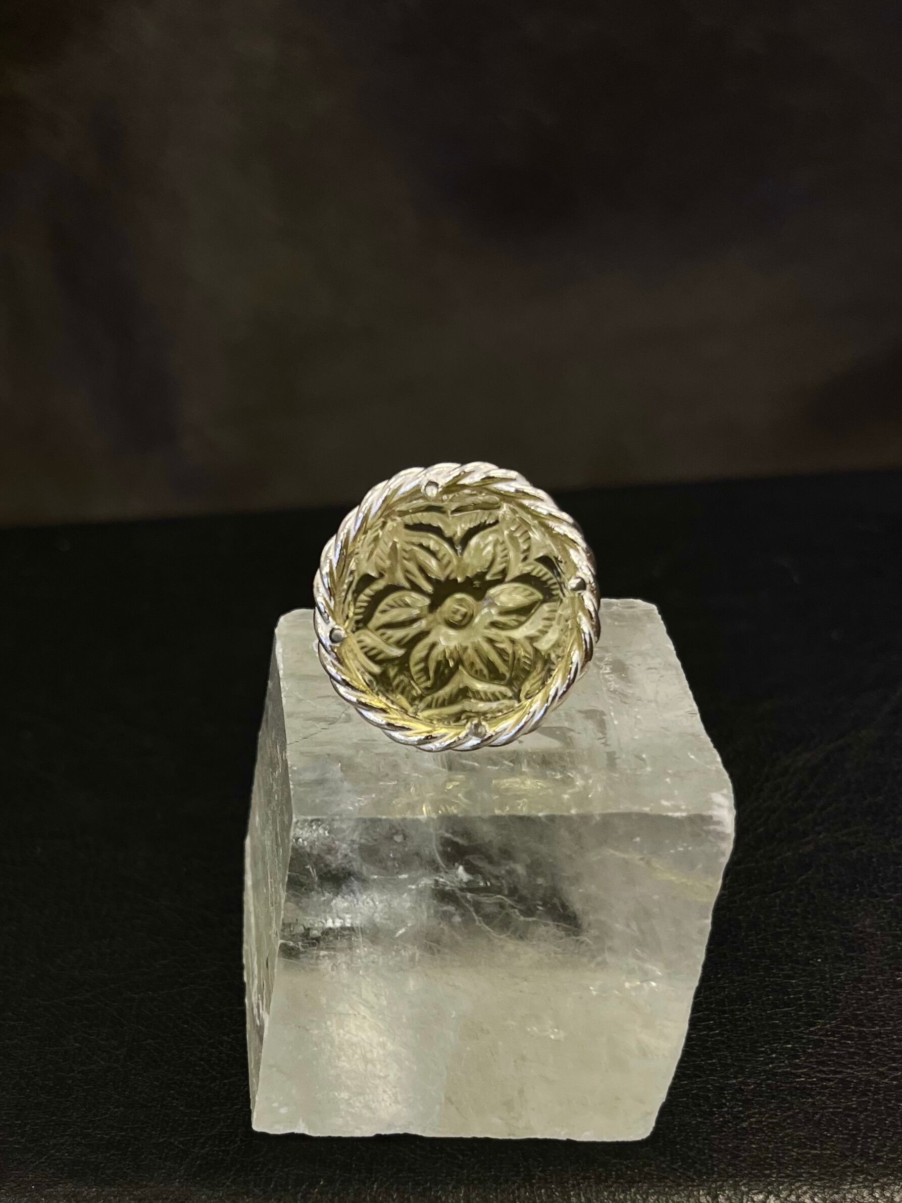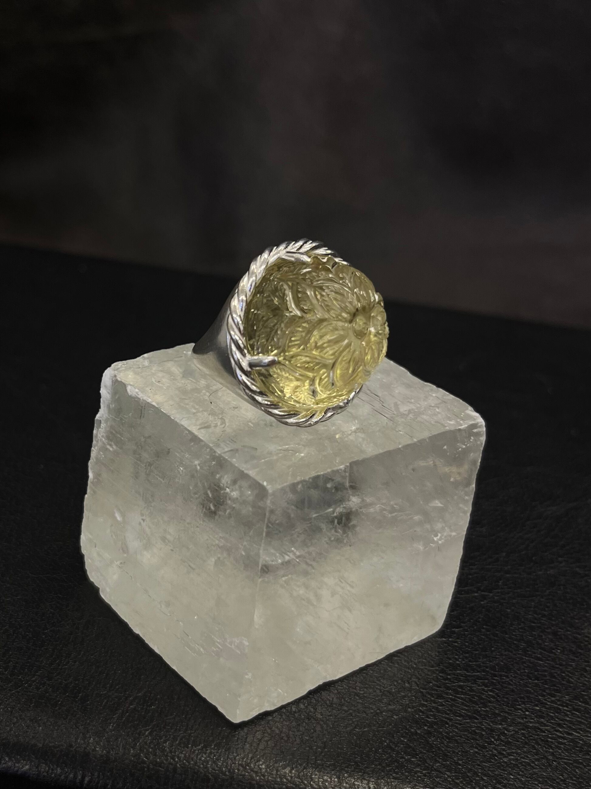 lemon quartz carving 925 Hand-carved natural stone flower from India.